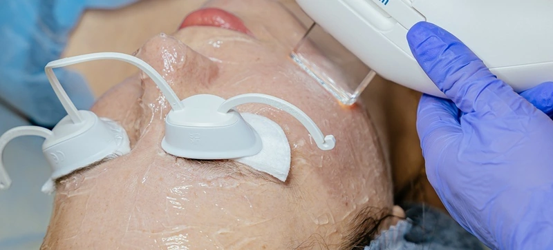 - Послідовне оброблення ділянки шкіри імпульсами світла або лазера.
