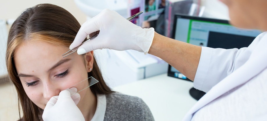 Діагностика починається з консультації офтальмолога, який оцінює скарги, тривалість симптомів та можливі провокуючі чинники. Під час огляду лікар детально досліджує стан країв повік, вій, слізної плівки та поверхні ока.
