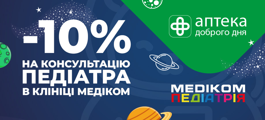 Клініка МЕДІКОМ разом із мережею "Аптека Доброго Дня" дбають про здоров'я дітей! Отримайте 10% знижки на консультацію педіатра за промо-кодом від мережі аптек.