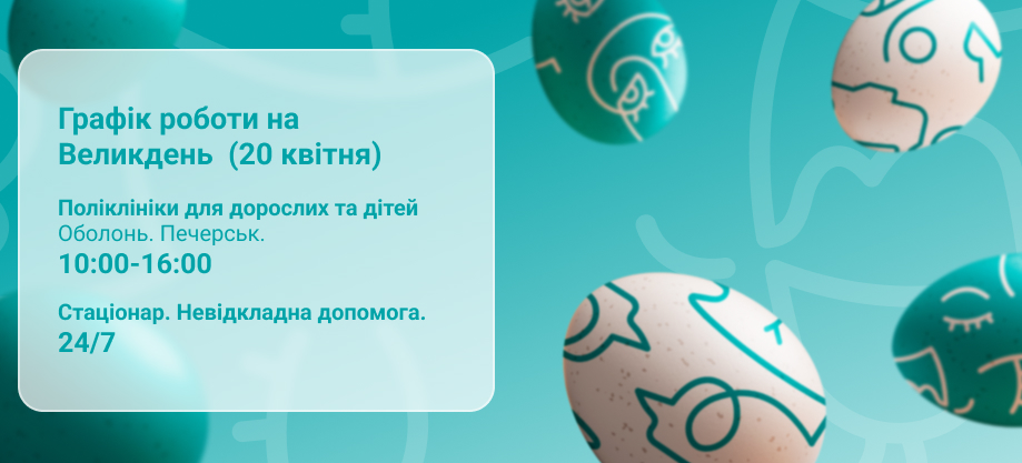 Клініка МЕДІКОМ продовжує працювати щодня, аби ви завжди могли отримати необхідну медичну допомогу. Інформуємо вас про зміни в графіку роботи клінік у Великодню неділю, 20 квітня.
