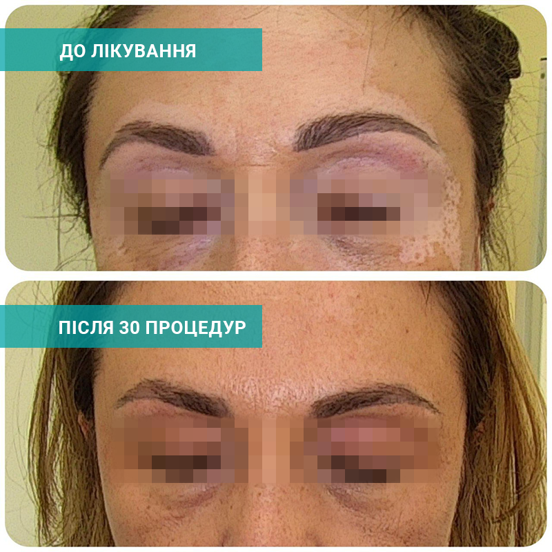 Пациенты, проходящие комбинированное лечение, отмечают постепенное выравнивание тона кожи и уменьшение контрастности участков.