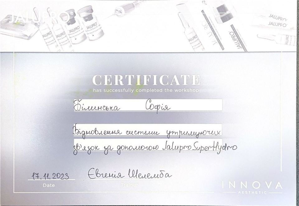 - 2023 г. — курс «Восстановление системы удерживающих связок по Jalupro SuperHydro».