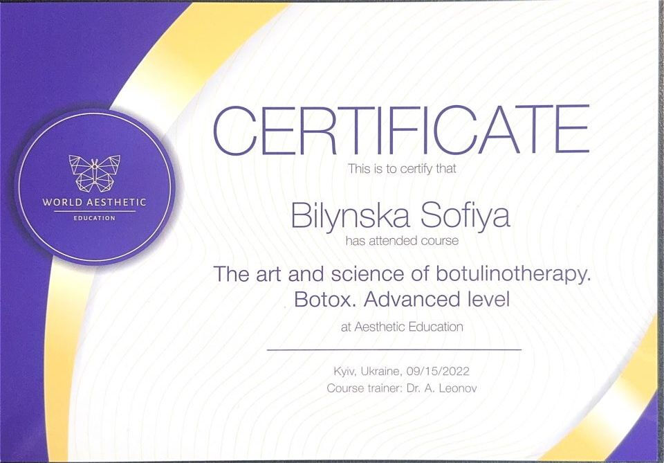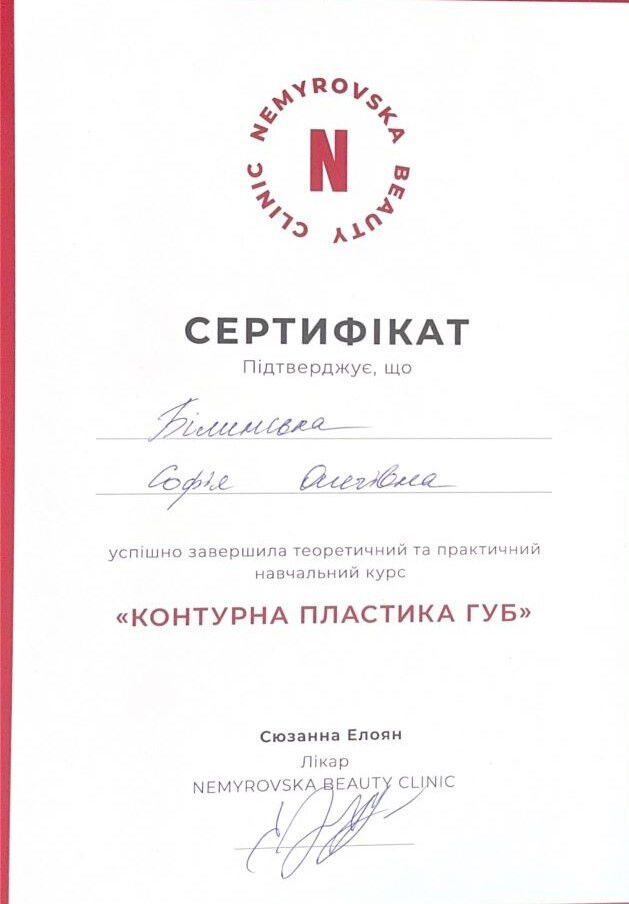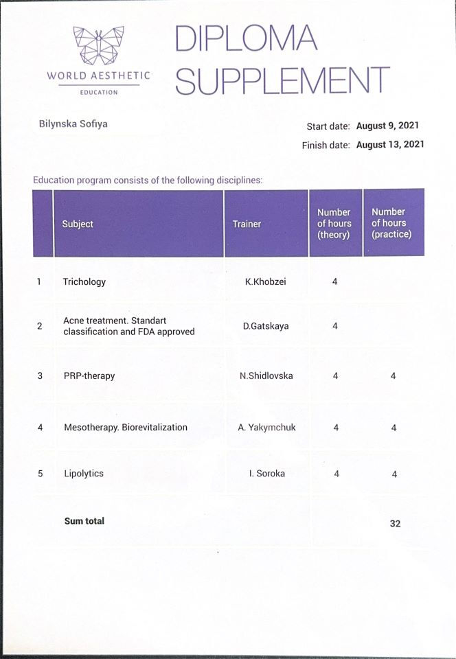 - 2021 г. — курс по инъекционным методикам (мезотерапия, биоревитализация, плазмотерапия, липолитическая терапия).