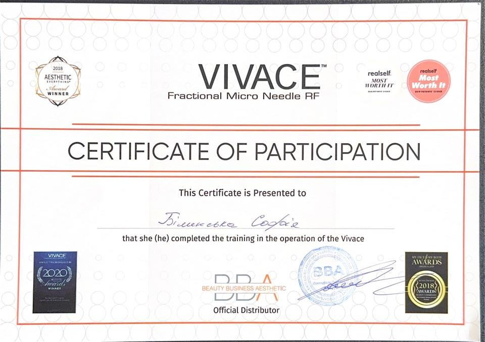 - 2024 г. — курс «Фракционный микроигольчатый RF Vivace».