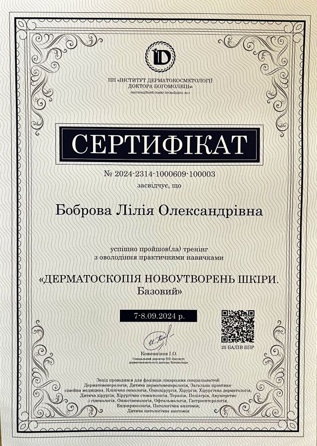 - 2024 г. – Тренинг по овладению практическими навыками «Дерматоскопия новообразований кожи. Базовый».