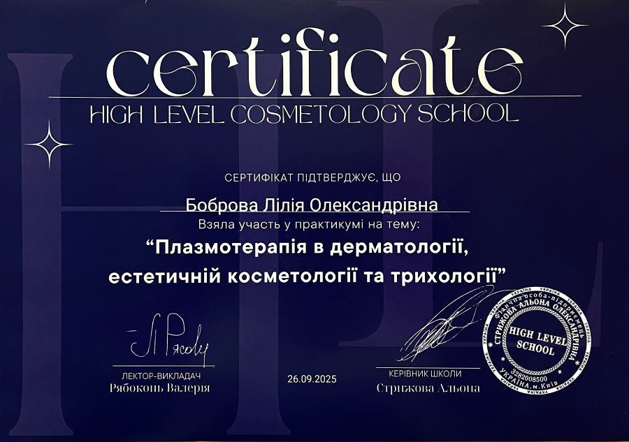 - 2025 г. – Практикум «Плазмотерапия в дерматологии, эстетической косметологии и трихологии».