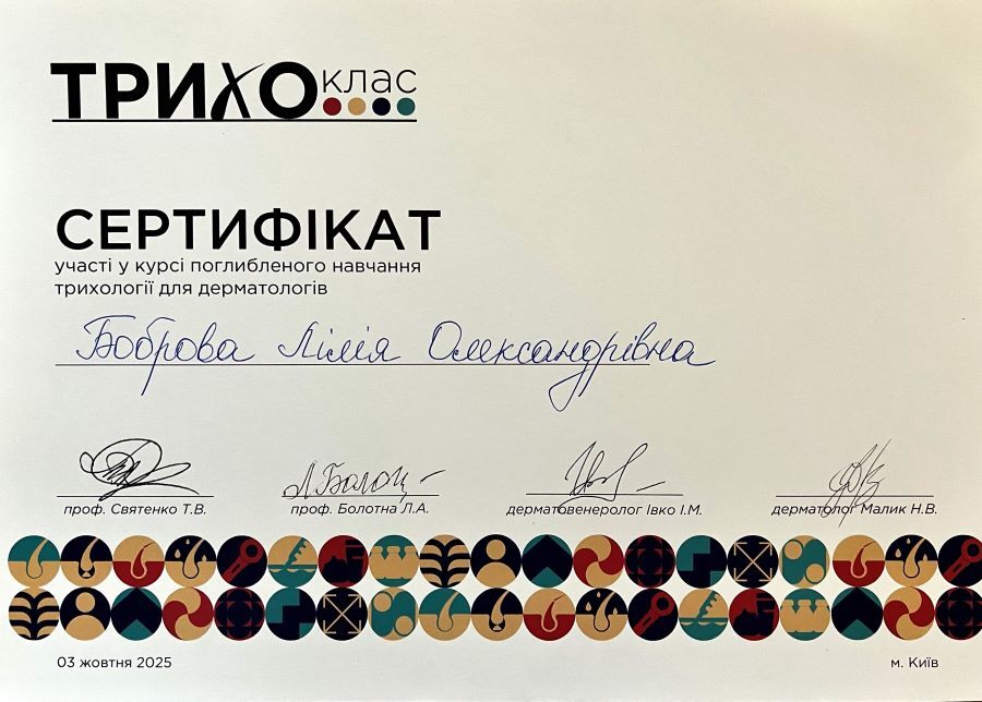 - 2025 г. – Курс углубленного обучения трихологии для дерматологов.