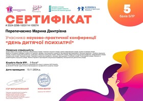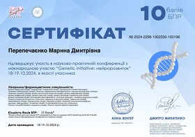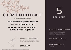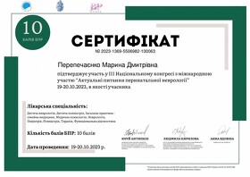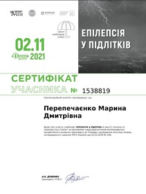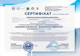 - 2021 г. - участник НПК с международным участием «Школа эпилепсии: диагностика и лечение структурных эпилепсий» Киев.