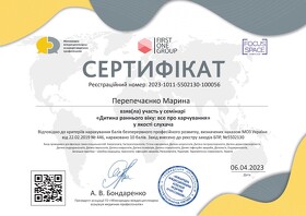 - 2003-2004 гг. - интернатура по детской неврологии факультета последипломного образования Донецкого национального медицинского университета им. М. Горького.