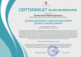 - 2019 г. - участник ІІ Национального конгресса «Актуальные вопросы перинатальной неврологии», Киев.