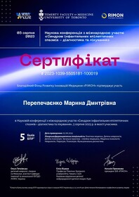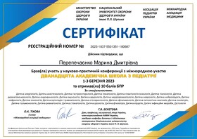 - 2019 г. - участник VІІІ Международного медицинского конгресса «Внедрение современных достижений медицинской науки в практику здравоохранения Украины».
