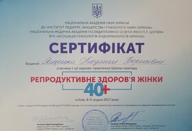 - 2020 г. - НМАПО им. П.Л. Шупика «Всеукраинская ассоциация профессионального образования врачей и фармацевтов» мастер-класс «Гормоны и здоровье женщины»;