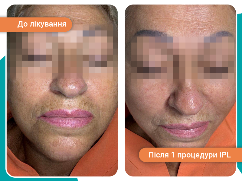Кейс: лечение пигментации. До процедуры и после 1 процедуры IPL.